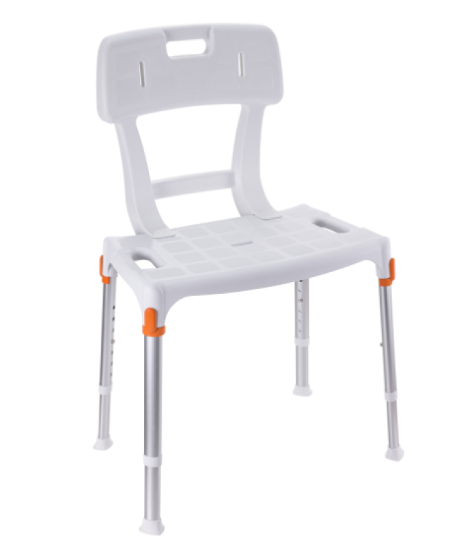 Denna stadiga duschpall syftar till att stödja alla som kan behöva ytterligare hjälp när de duschar eller utför personliga skötselrutiner i badrummet. Den snygga, moderna designen är estetiskt tilltalande för alla typer av badrum för antingen privata hem och/eller vårdinstitutioner: de använda materialen garanterar robusthet, hygien och hållbarhet. Tillverkad av plast av högsta kvalitet med dräneringshål, den breda sitsen med släta kanter minskar trycket ”stress” på kroppen. 50 x 30 cm. Sidogrepp i sitsen underlättar användningen. Höjdregleras, 39 till 54 cm. Max brukarvikt 150 kg.