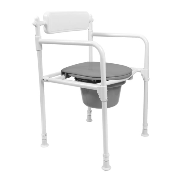 Den hopfällbara toalettstolen är avsedd för personer som behöver stöd vid toalettbesök eller duschning. Stolen är